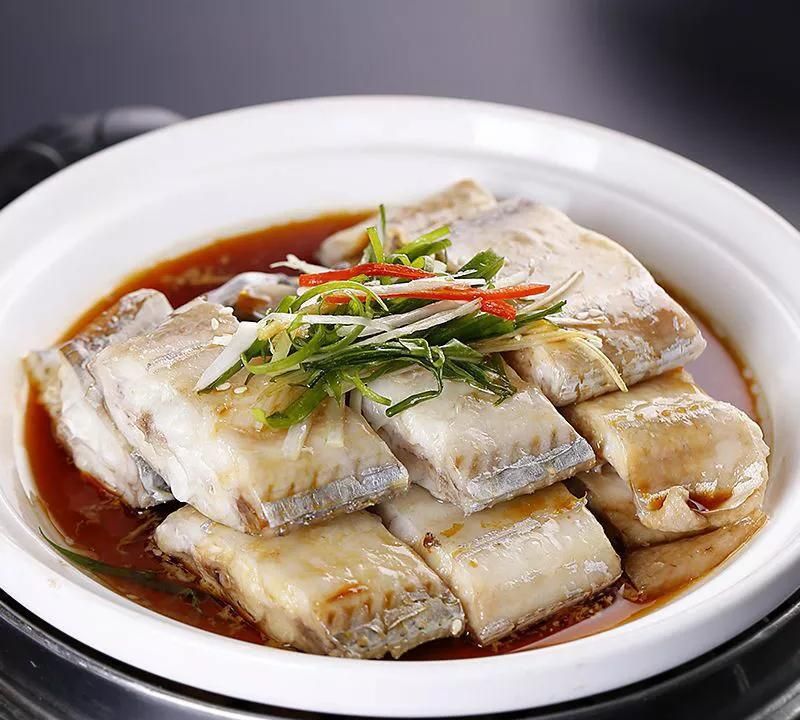 水开后蒸12分钟左右,取出带鱼,去掉姜丝和葱丝。